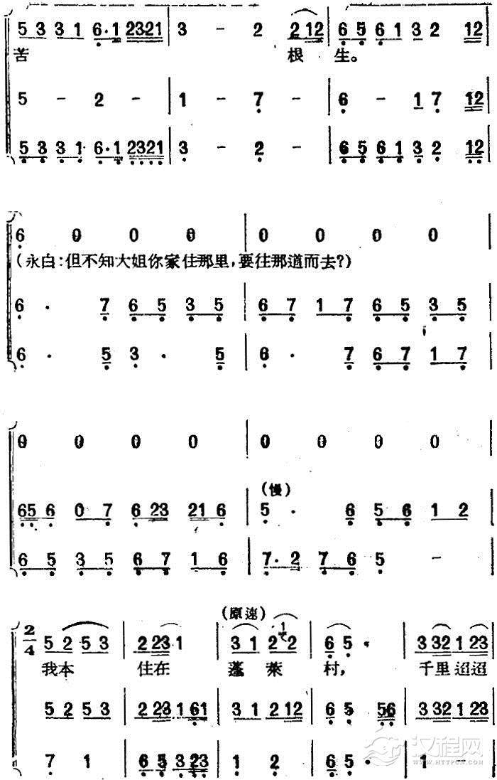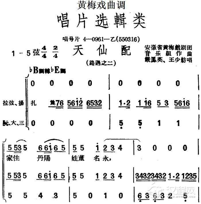 戏曲曲谱[黄梅戏曲调]唱片选辑类:天仙配(路遇之一)