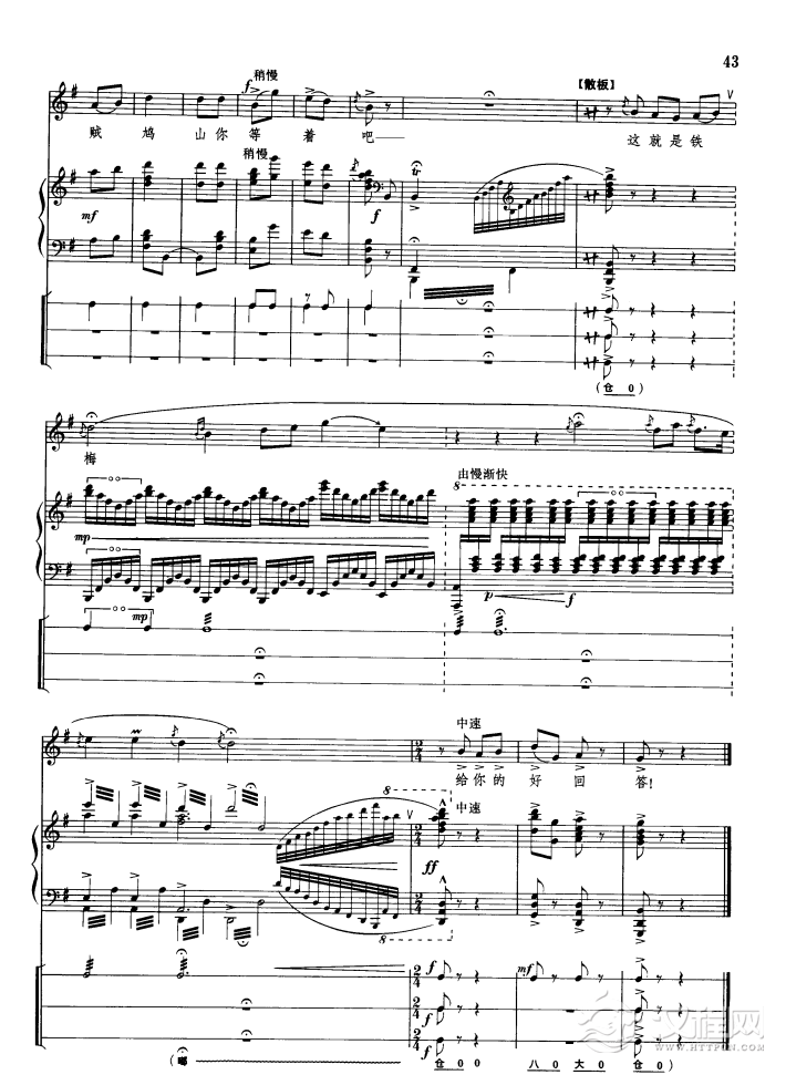 戏曲曲谱钢琴伴唱《红灯记》(13首)(51-70)