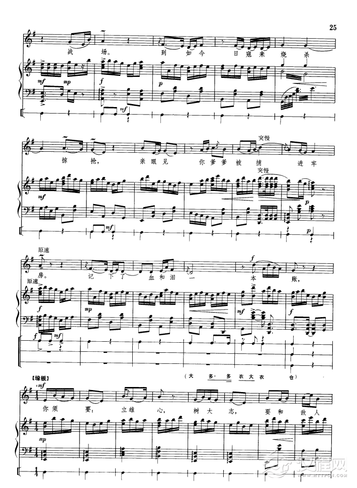 戏曲曲谱歌剧《红云崖》选曲:母亲的心