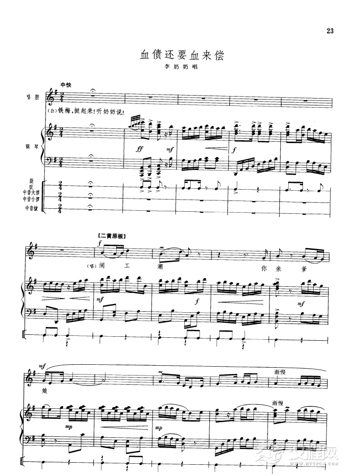 戏曲曲谱都有一颗红亮的心(钢琴伴唱)