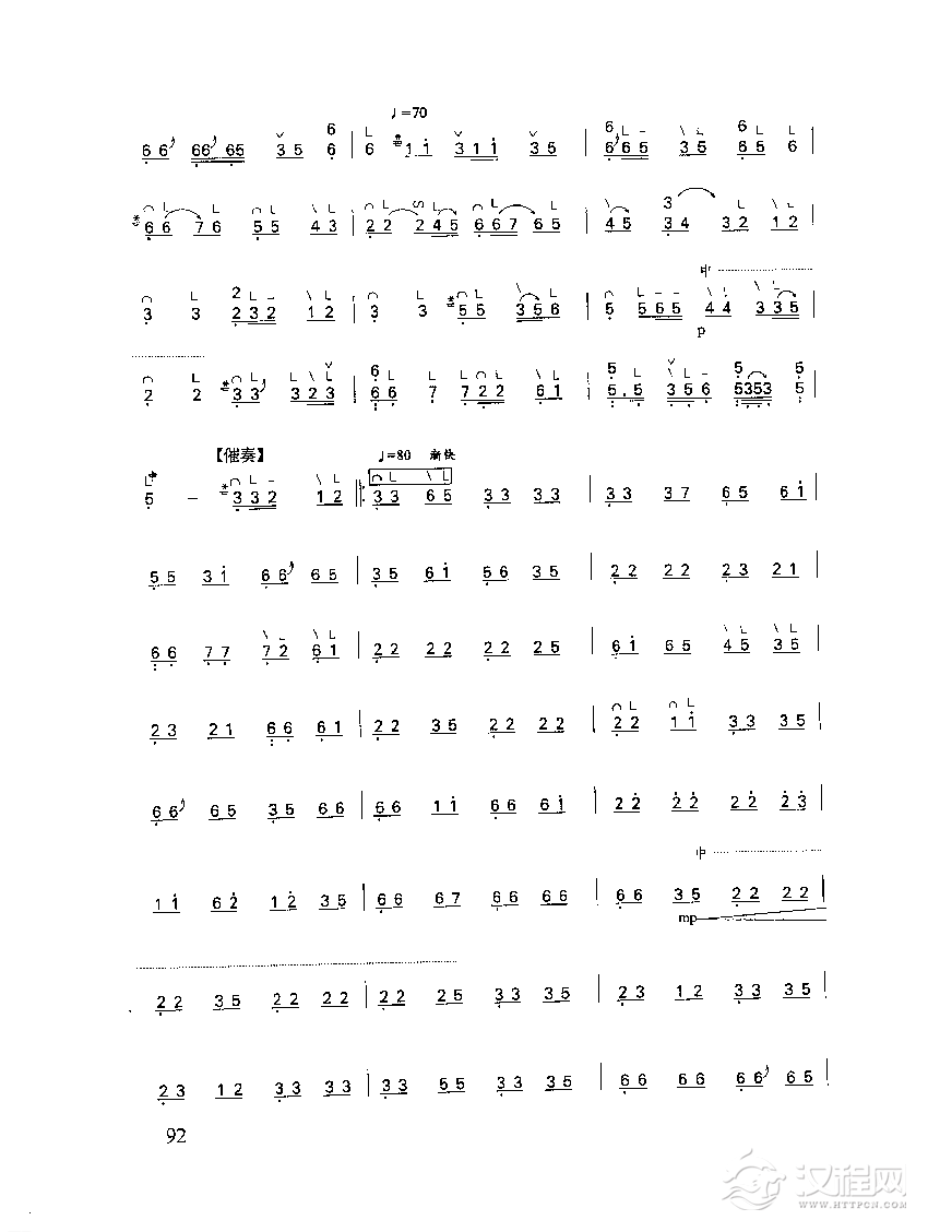 曲谱大全竹笛练习曲《五梆子》片段