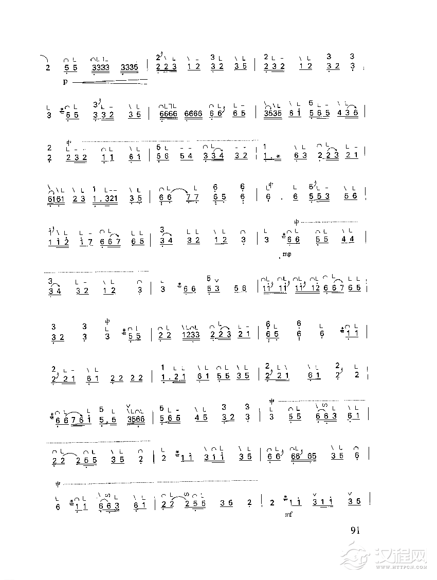 曲谱大全竹笛循环换气练习《潇湘行》片段