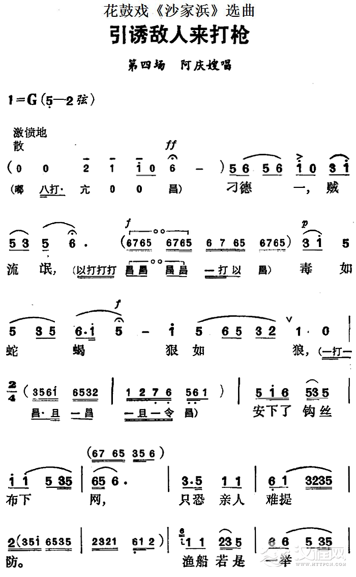 戏曲曲谱花鼓戏《沙家浜》选曲:共产党就像天上的太阳一样
