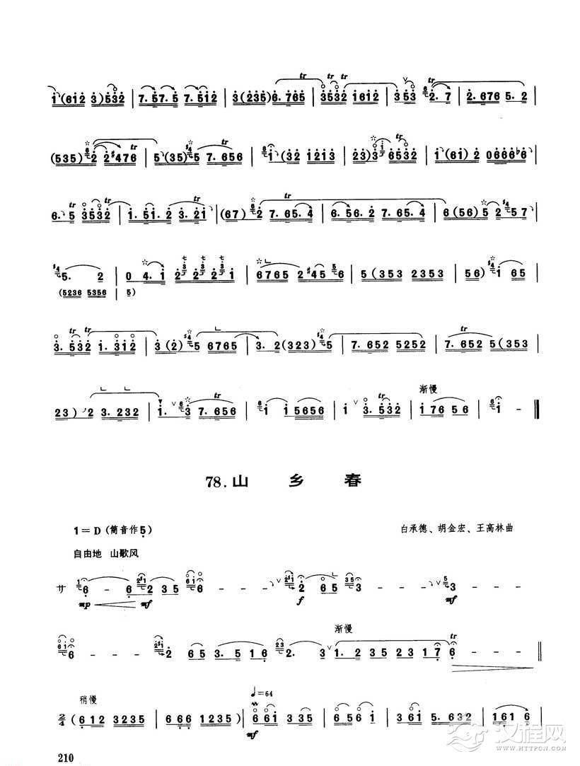 曲谱大全唢呐独奏乐曲【山乡春】白承德 胡金宏 王高林曲