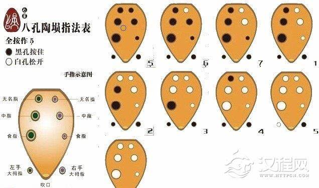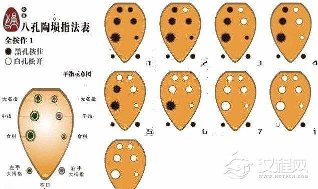 乐器学习六孔埙指法图表 各种六孔埙的指法表