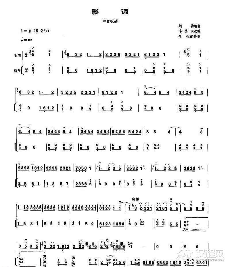 曲谱大全扬琴伴奏谱【二泉映月】二胡独奏