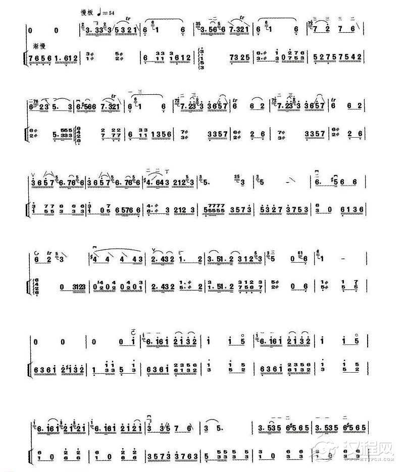 曲谱大全扬琴伴奏谱【月芽五更】高音板胡