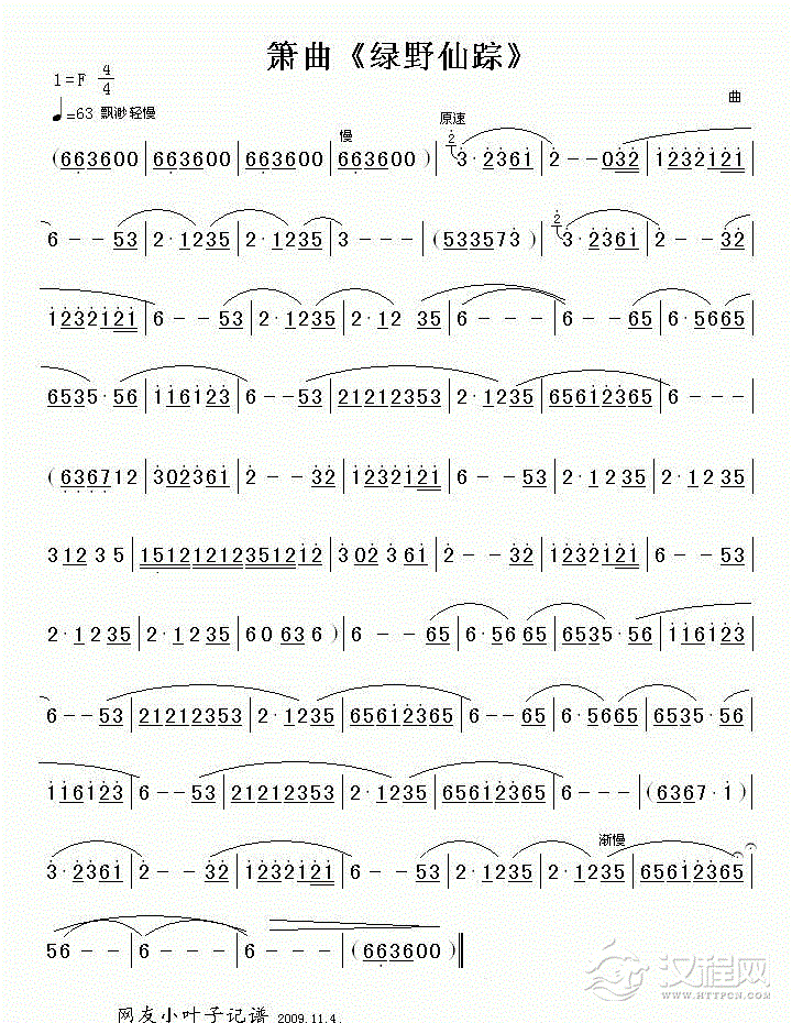 曲谱大全洞箫曲谱【乱红】
