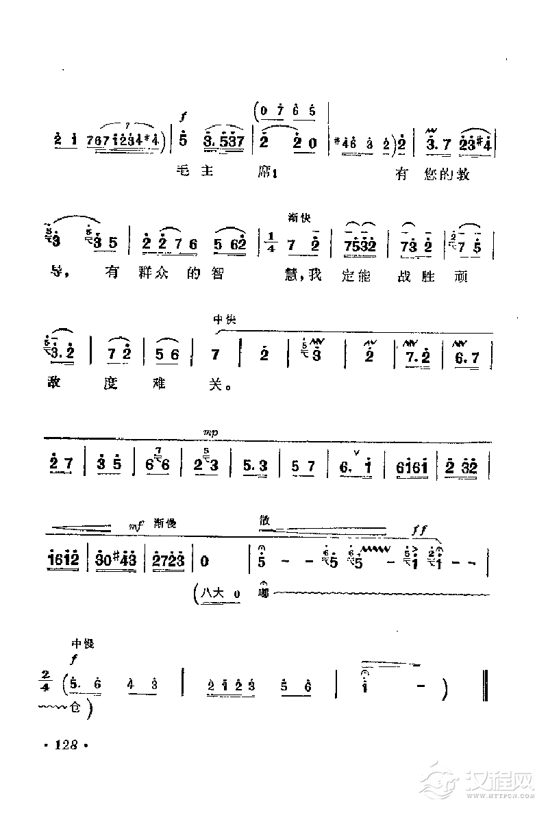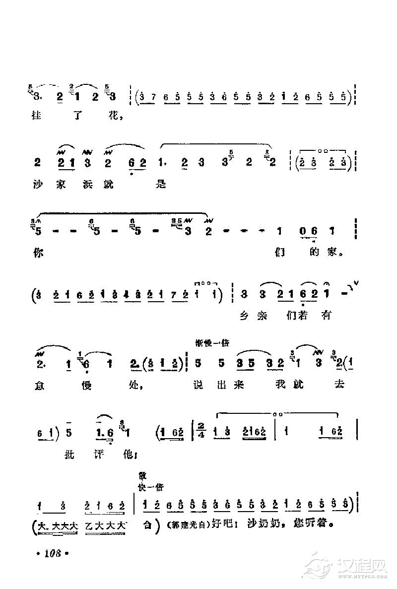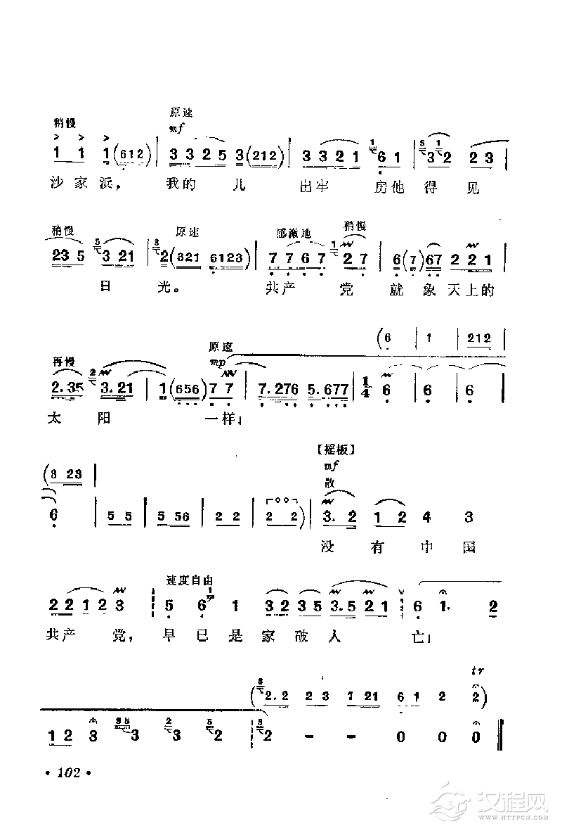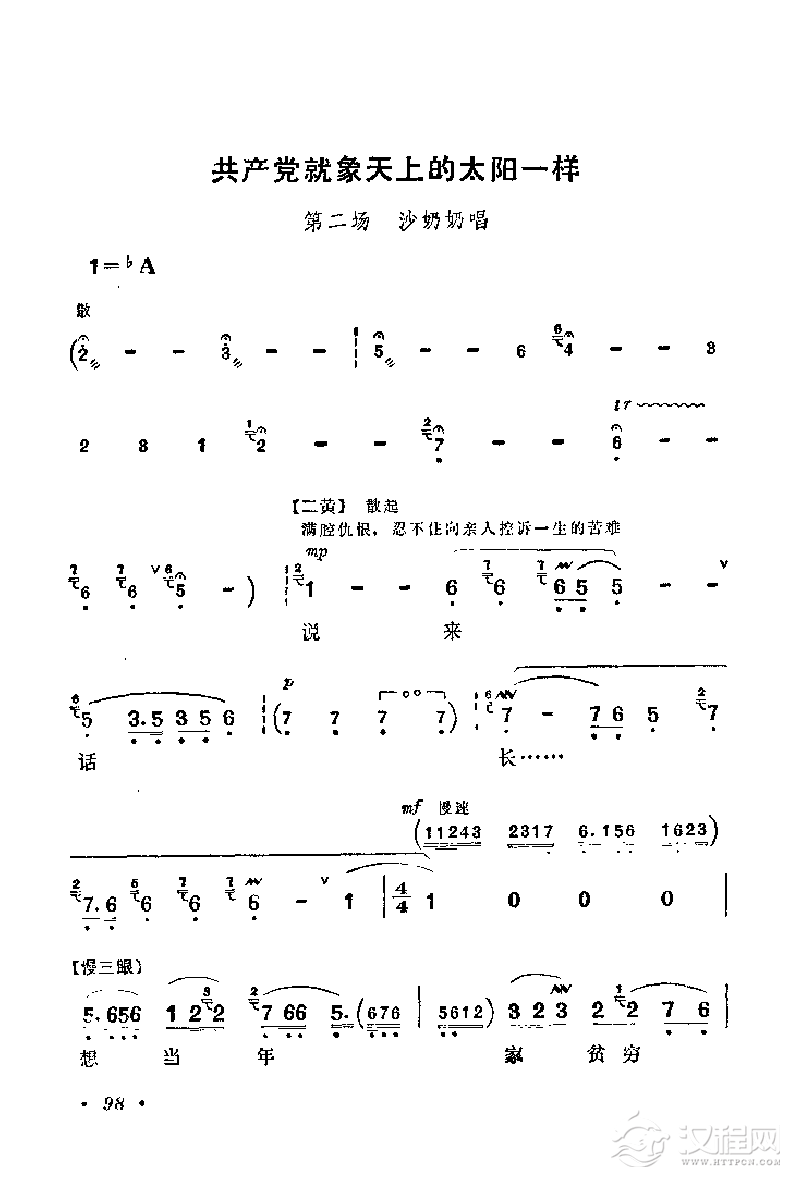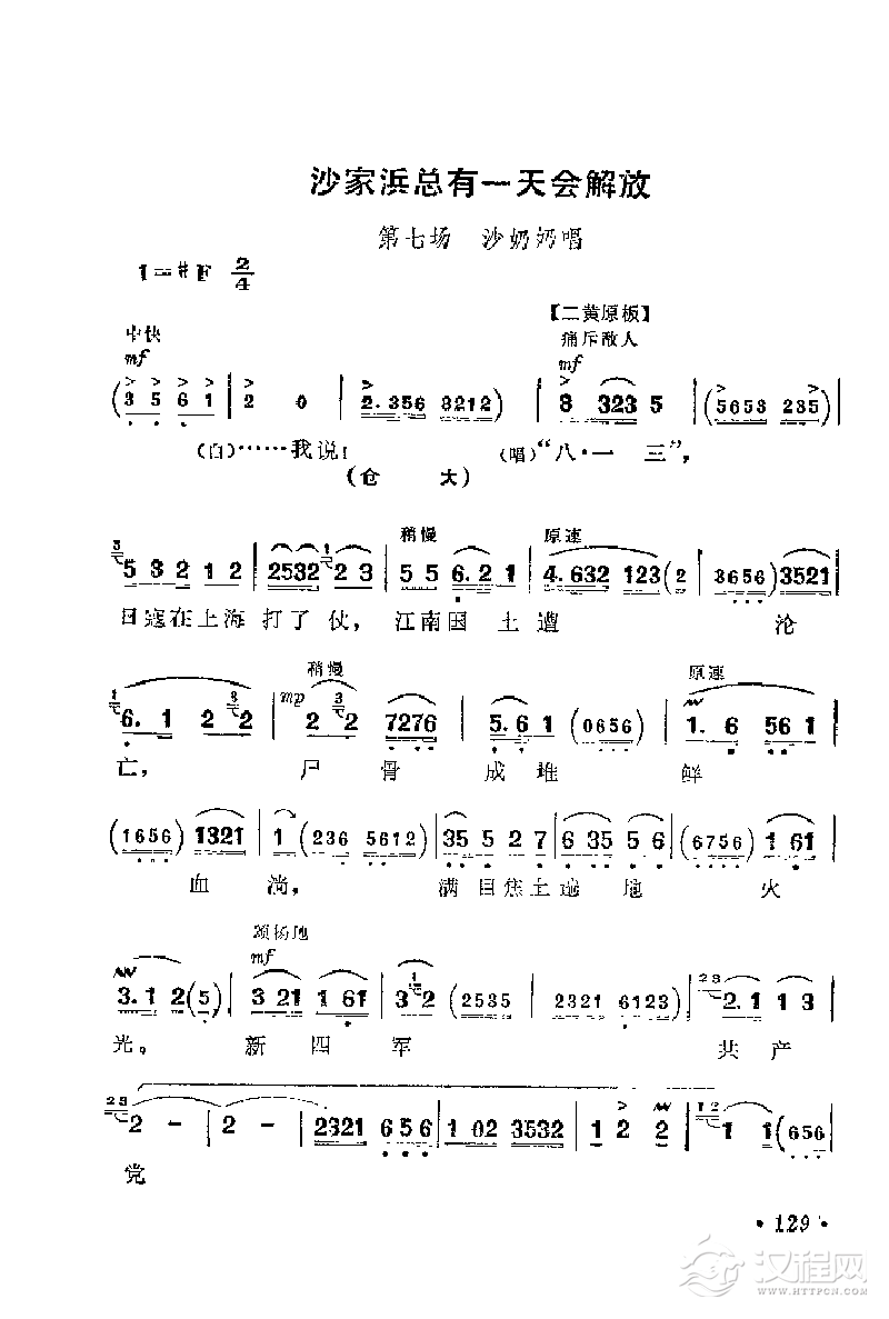 戏曲曲谱花鼓戏《沙家浜》选曲:共产党就像天上的太阳一样
