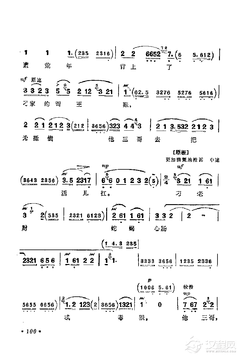 戏曲曲谱[阳戏]正宫调三流(《蓝寄子搬砖》马氏唱段)