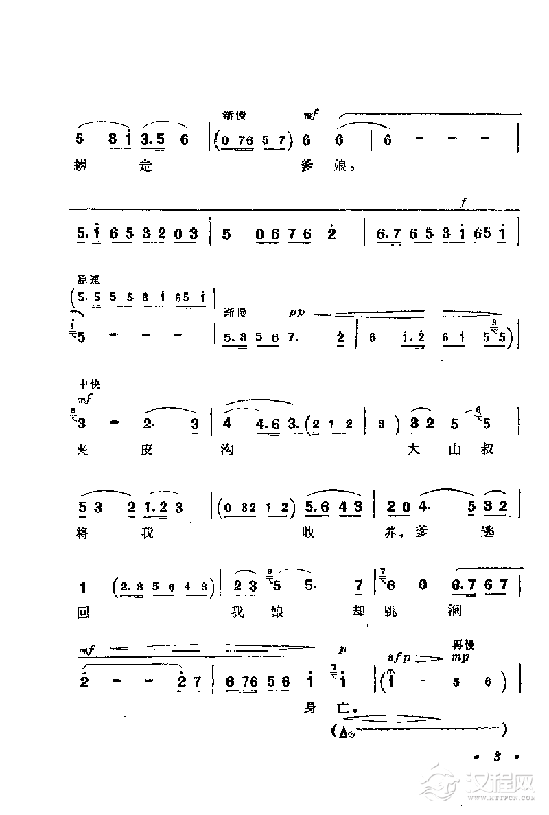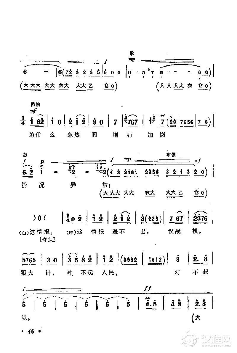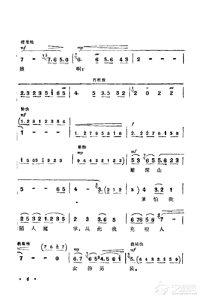 戏曲曲谱花鼓戏《沙家浜》选曲:远走高飞难找寻