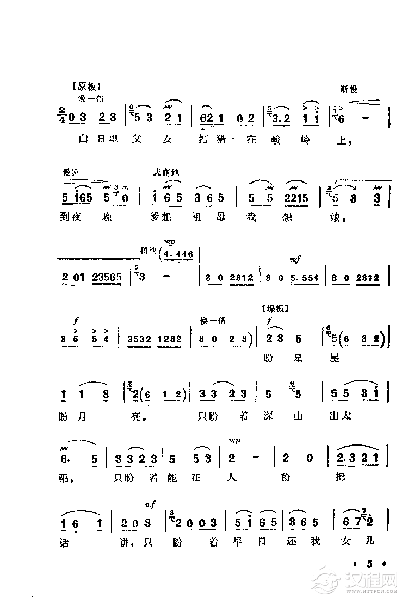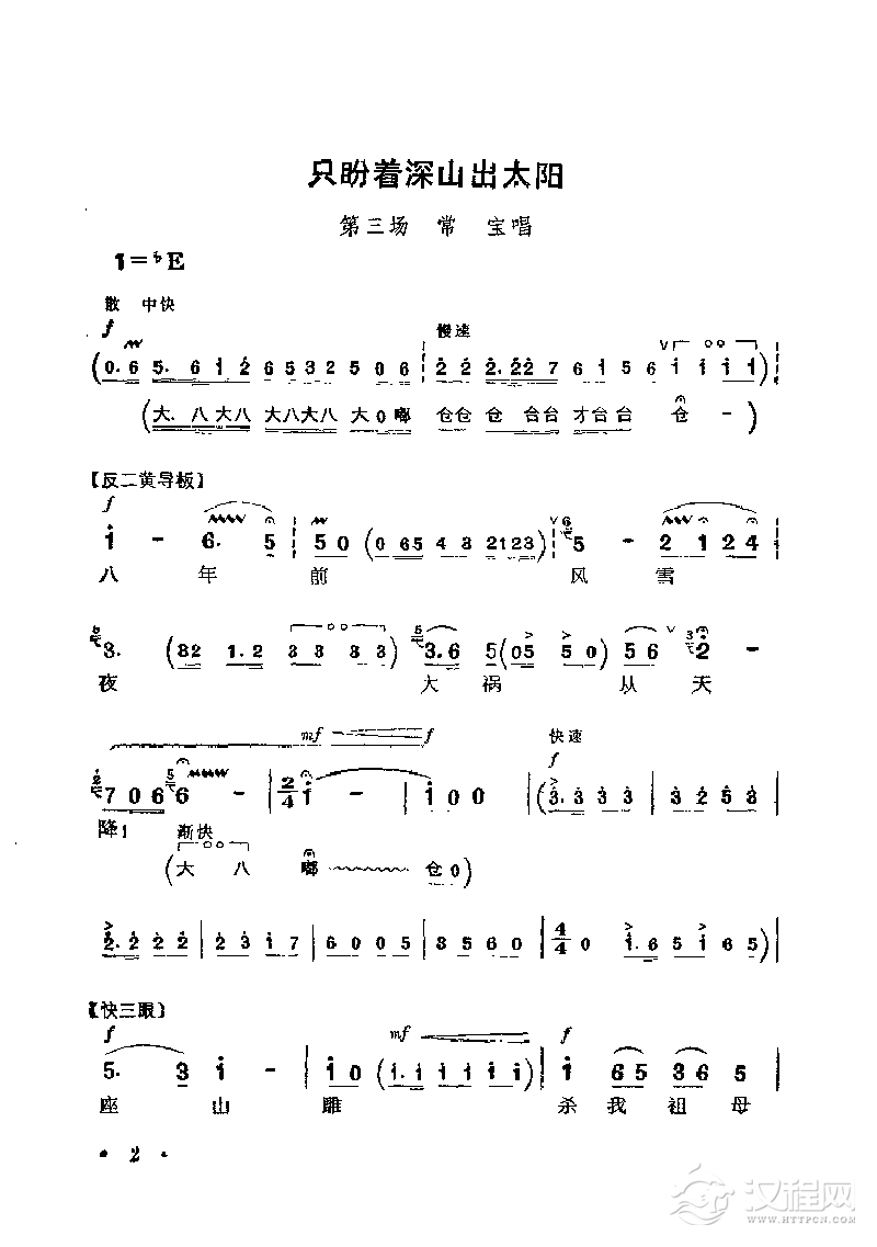 戏曲曲谱[阳戏]翻山腔(《三宝舞龙》二姐唱段)
