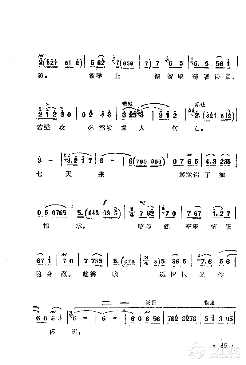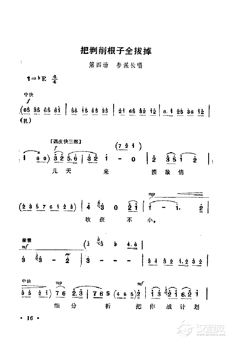 戏曲曲谱花鼓戏《沙家浜》选曲:引诱敌人来打枪