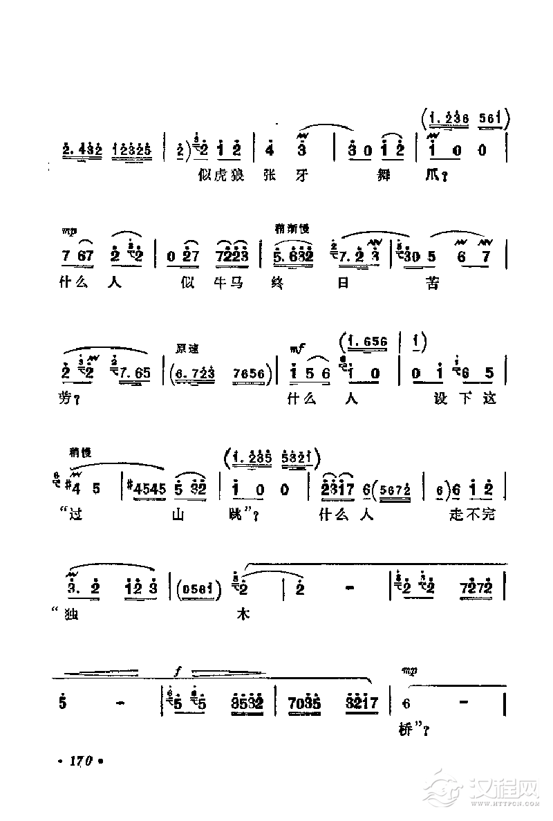 戏曲曲谱[傩堂戏]喜悦调(《游城晒衣》梅香、安童唱段)