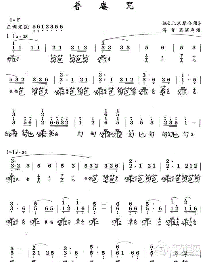 传统古琴谱【普安咒】北京琴会谱