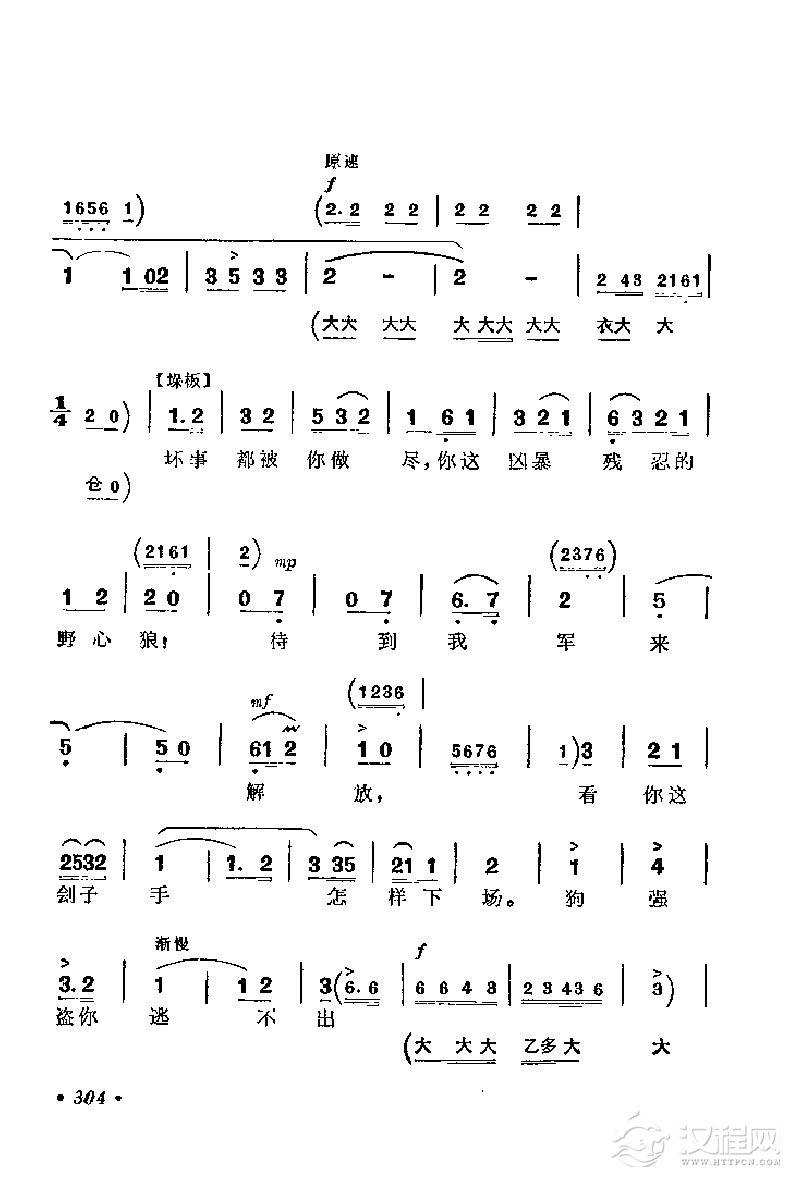 戏曲曲谱钢琴伴唱京剧《红灯记》:仇恨入心要发芽(李铁梅唱段)