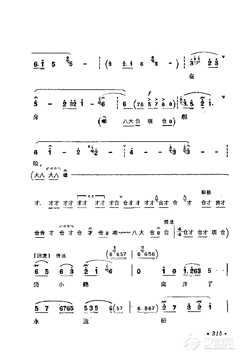 戏曲曲谱花鼓戏《沙家浜》选曲:远走高飞难找寻