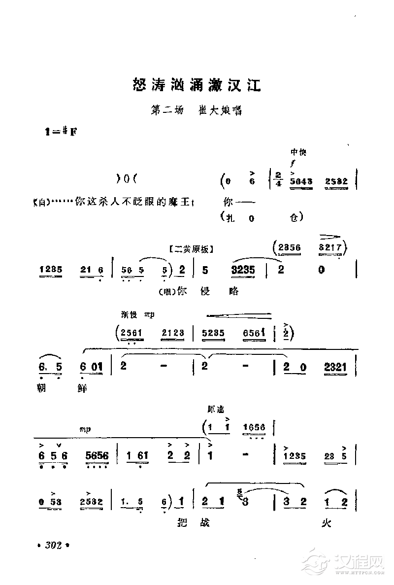 戏曲曲谱花鼓戏《沙家浜》选曲:飞兵奇袭沙家浜