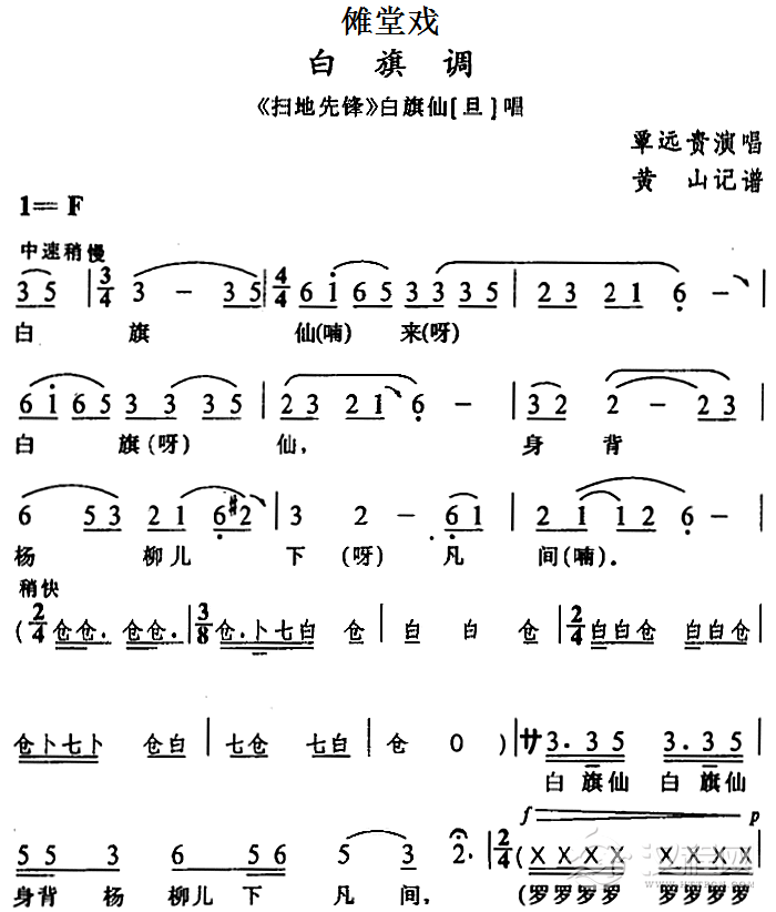 戏曲曲谱[傩堂戏]丫环调(《游城晒衣》梅香、安童唱段)