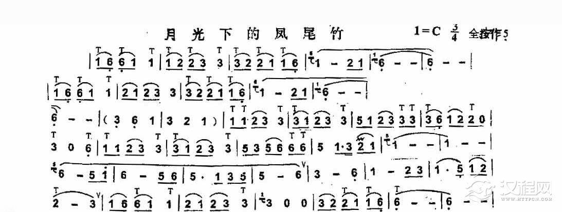 曲谱大全葫芦丝名曲谱【月光下的凤尾竹】