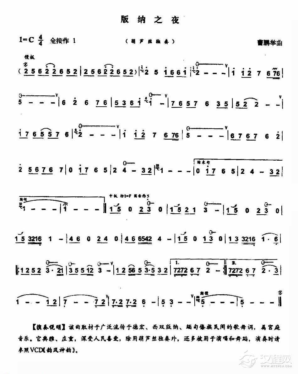 葫芦丝精选歌谱【版纳之夜】