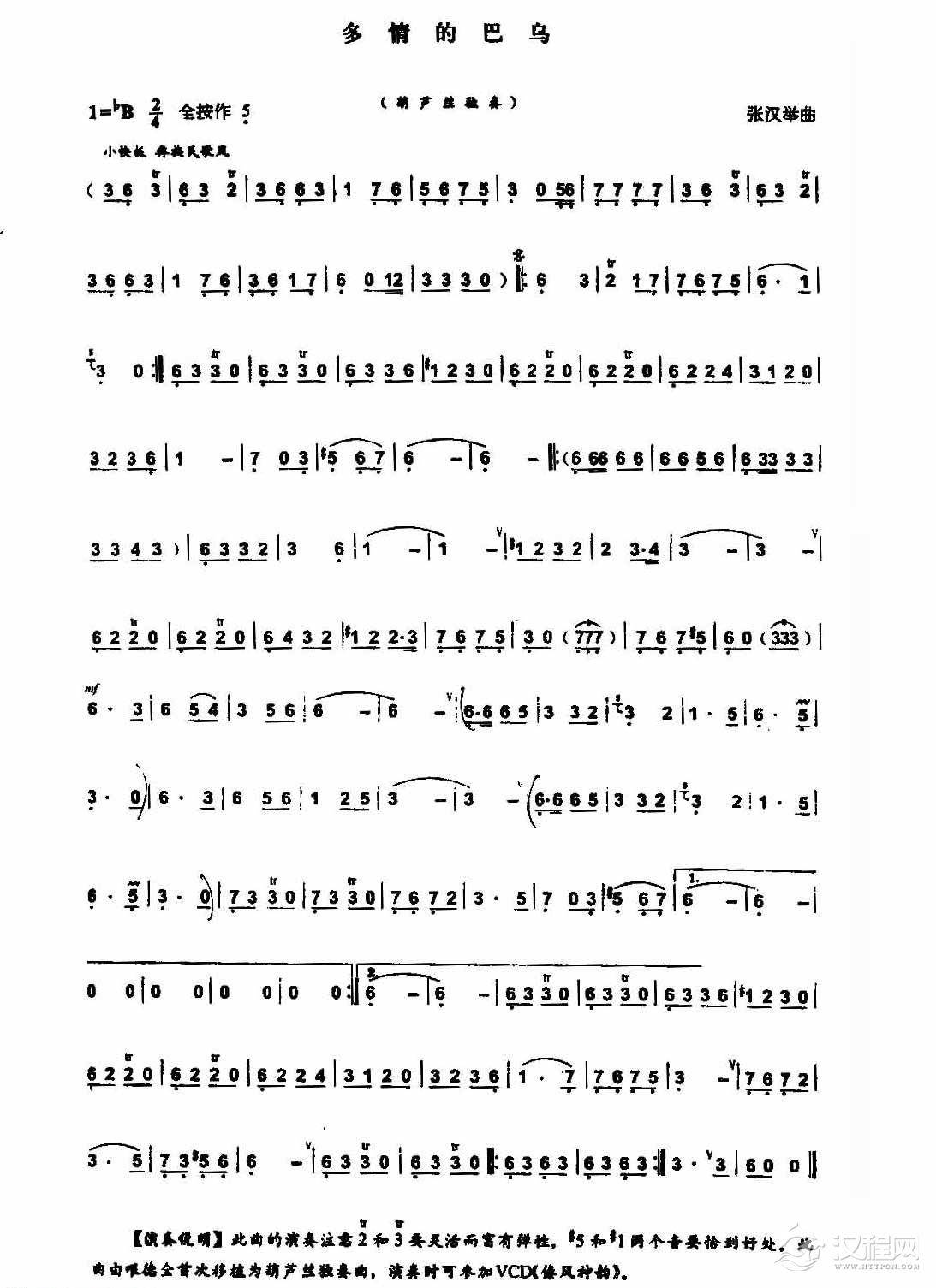曲谱大全葫芦丝精选歌谱【会唱歌的金葫芦】