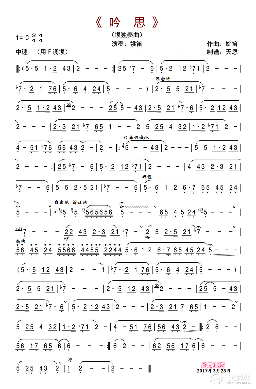 曲谱大全思春 (埙的曲谱)