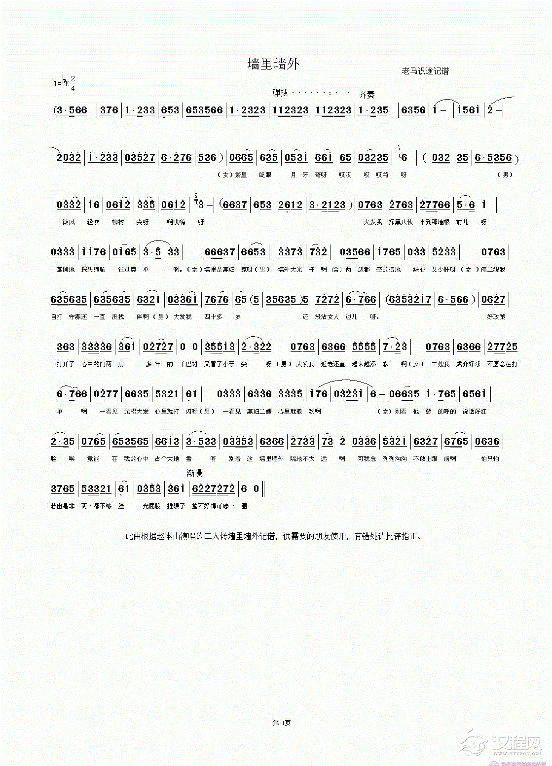 戏曲曲谱[粤曲]月底情思(调寄《甜言蜜语》