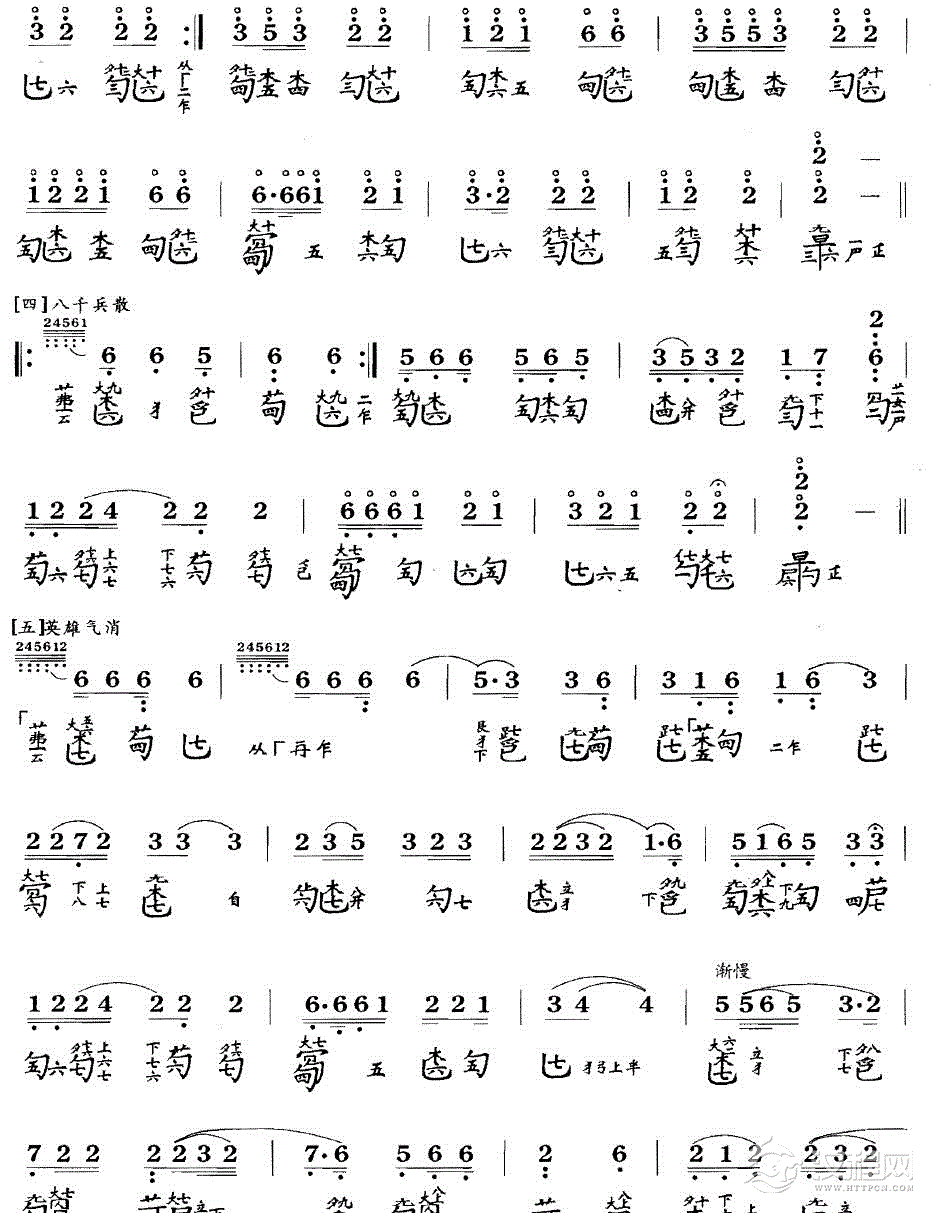 曲谱大全古琴考级曲目:五级【岳阳三醉】古琴考级曲集