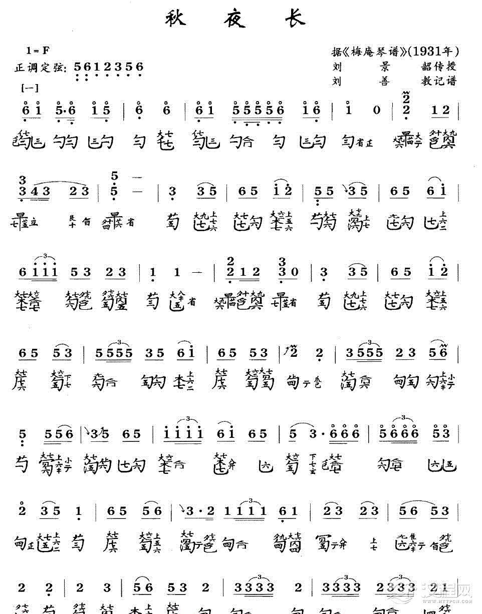 曲谱大全古琴考级曲目:二级【良宵引】古琴考级曲集