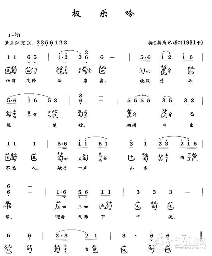 曲谱大全古琴考级曲目:五级【楚歌】古琴考级曲集