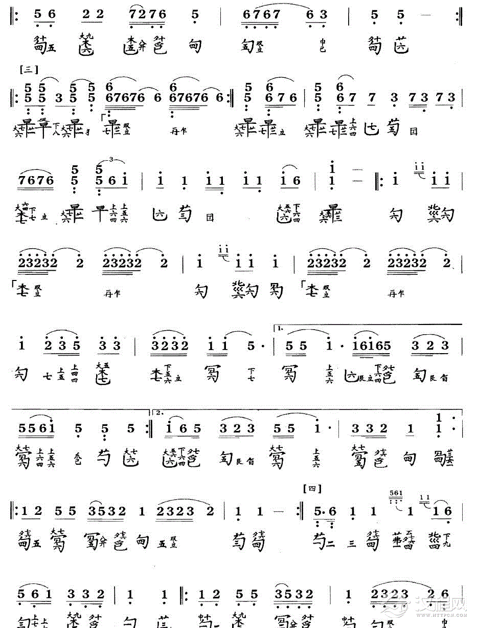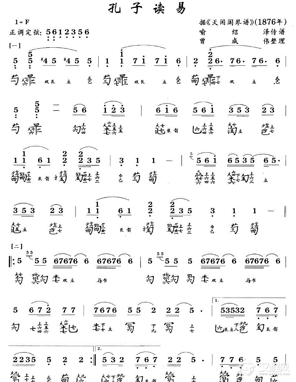曲谱大全古琴考级曲目:二级【拉纤歌】古琴考级曲集