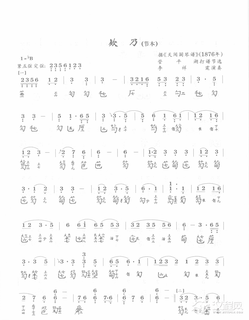 曲谱大全古琴考级曲目:九级【乌夜啼】古琴考级曲集