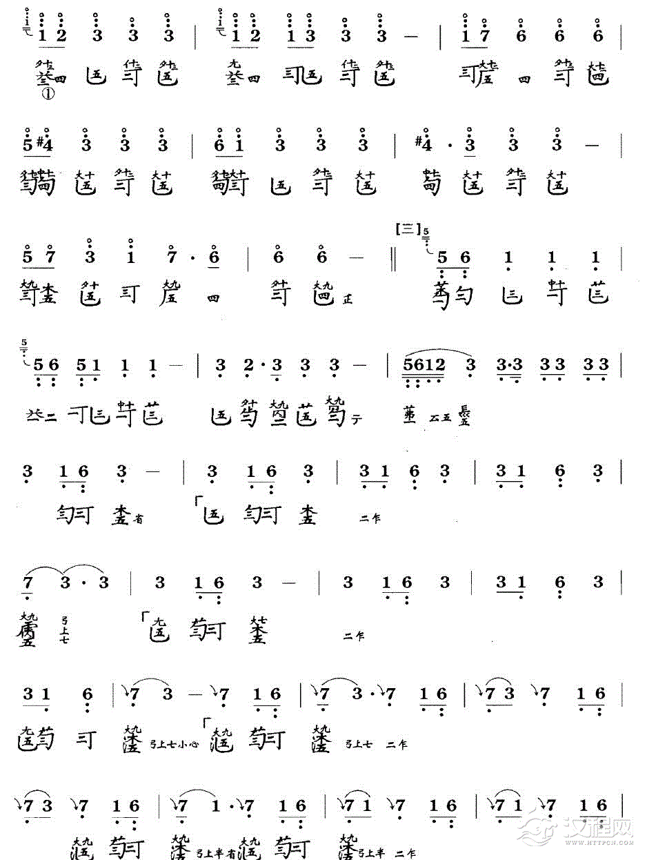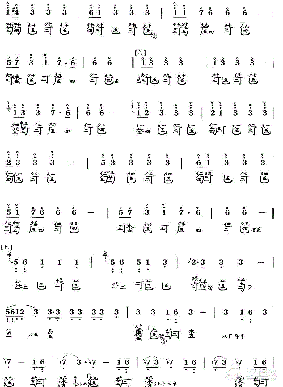 曲谱大全古琴考级曲目:二级【拉纤歌】古琴考级曲集