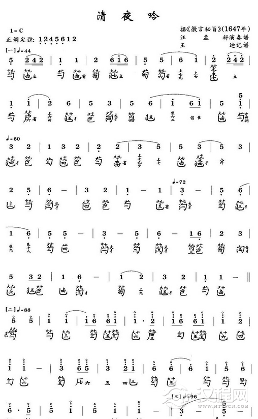 曲谱大全古琴考级曲目:二级【泣颜回】古琴考级曲集
