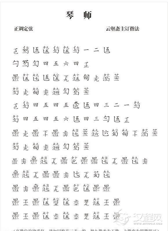 曲谱大全古琴考级曲目:二级【泣颜回】古琴考级曲集