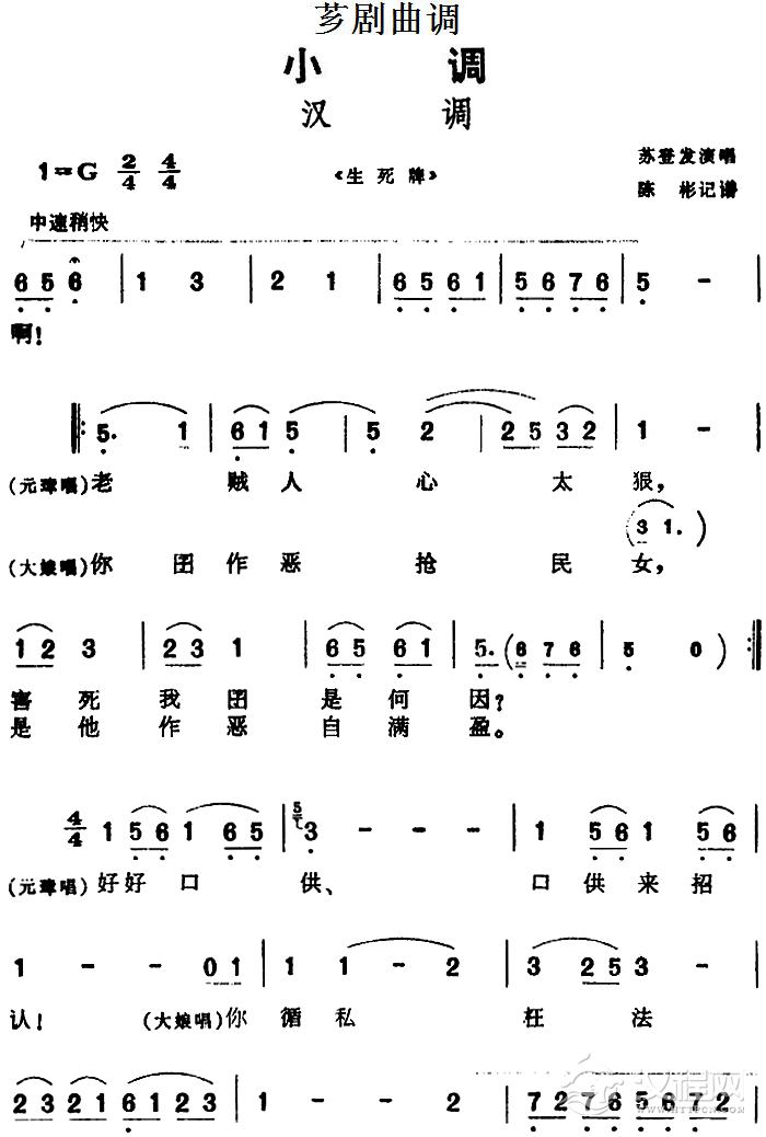 戏曲曲谱[芗剧曲调]汉族调(选自《荔镜记》说唱本)