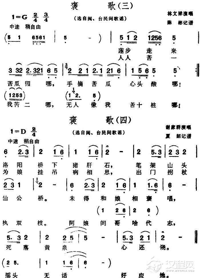 戏曲曲谱[芗剧曲调]北补瓮调(选自《山伯英台》)