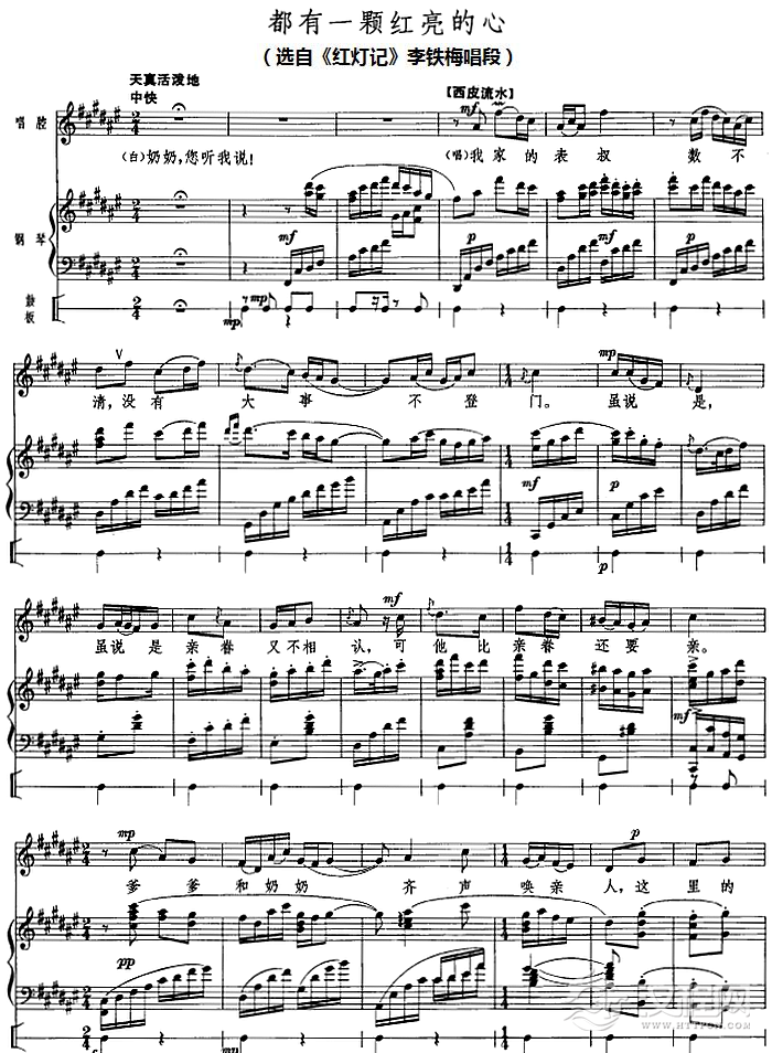 戏曲曲谱钢琴伴唱京剧《红灯记》:光辉照儿永向前(李铁梅唱段)
