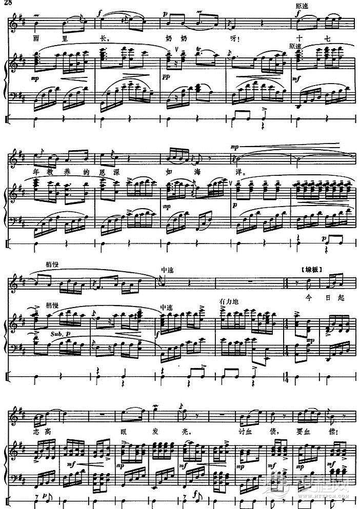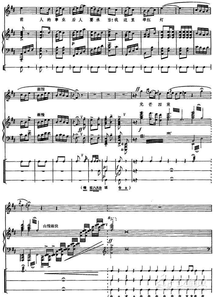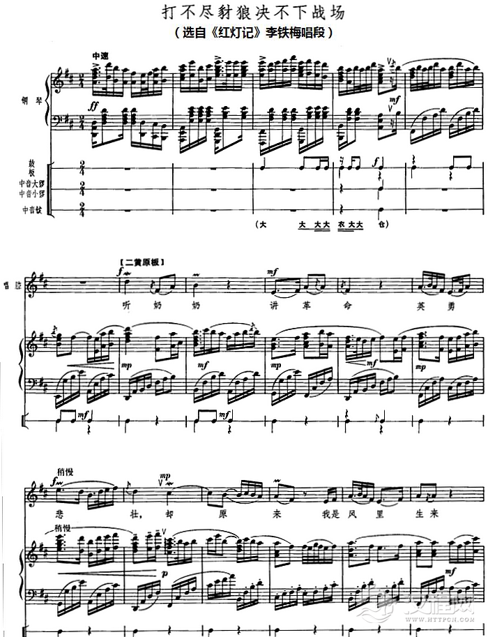 戏曲曲谱钢琴伴唱京剧《红灯记》:仇恨入心要发芽(李铁梅唱段)