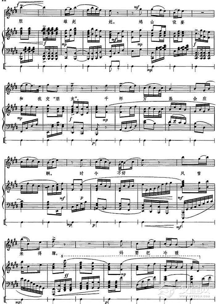 戏曲曲谱花鼓戏《沙家浜》选曲:要学那泰山顶上一青松