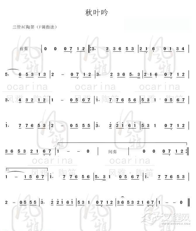 曲谱大全陶笛谱【味 道】12孔AC陶笛 C调指法