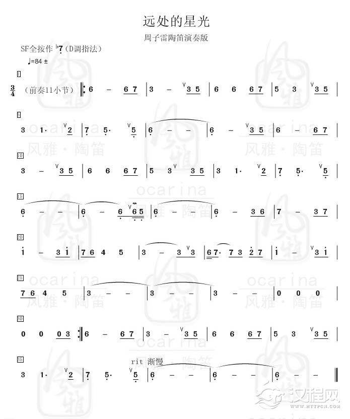 曲谱大全陶笛谱【城里的月光】