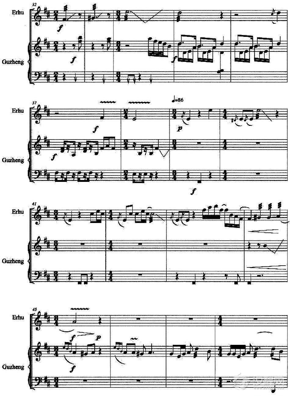 曲谱大全东西南北绣荷包(二胡分谱)