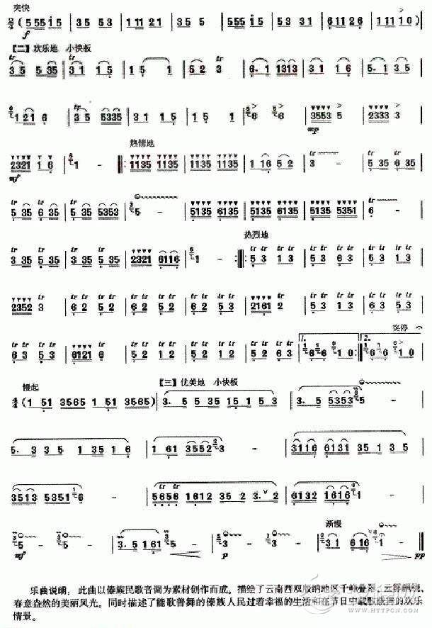 曲谱大全巴乌乐谱《边寨春早》