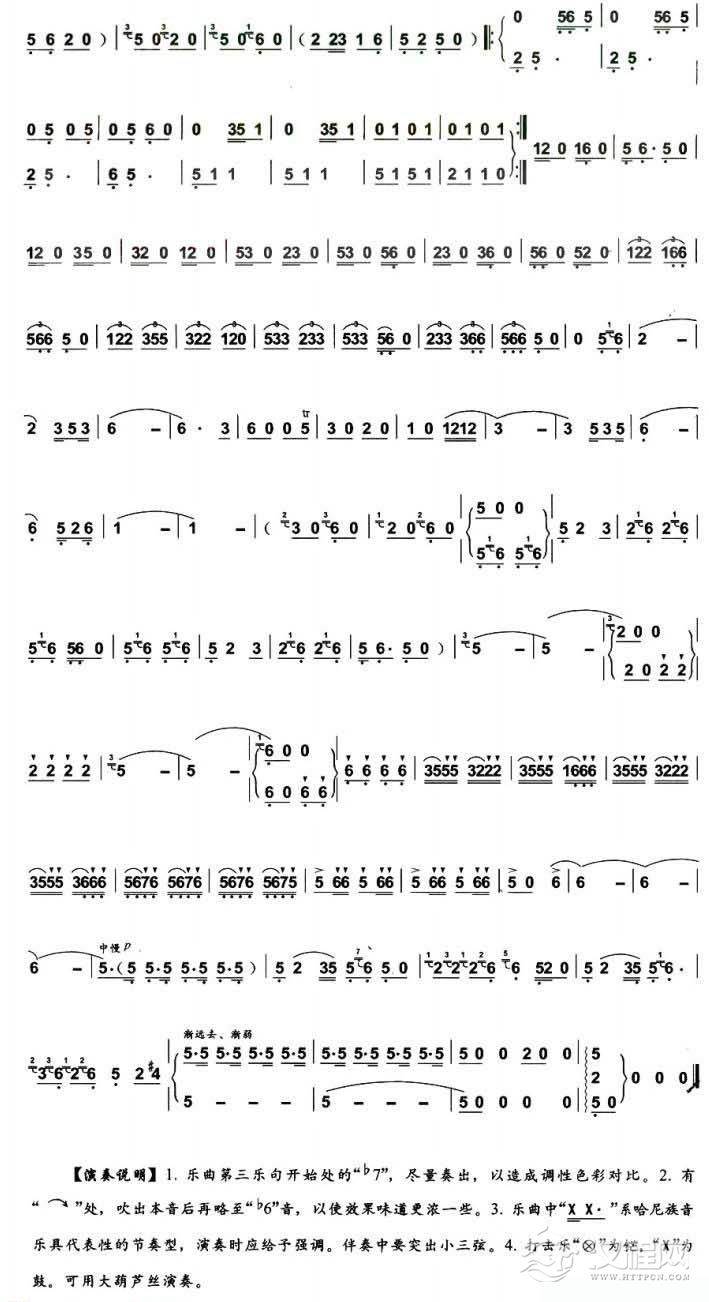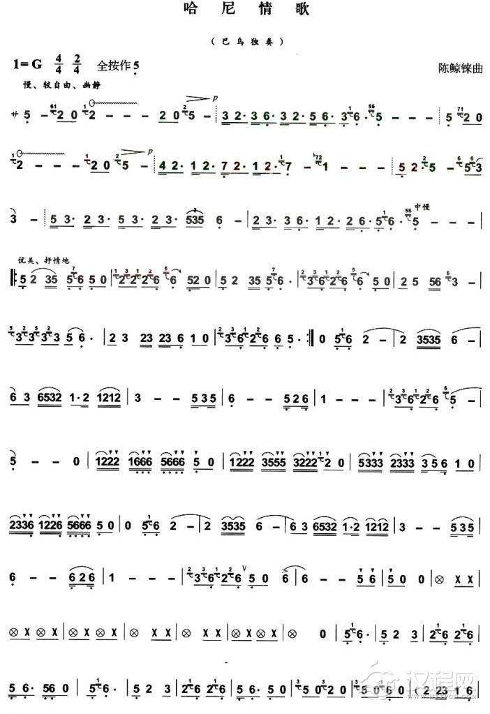 曲谱大全巴乌乐谱《哈尼欢歌》