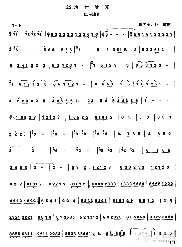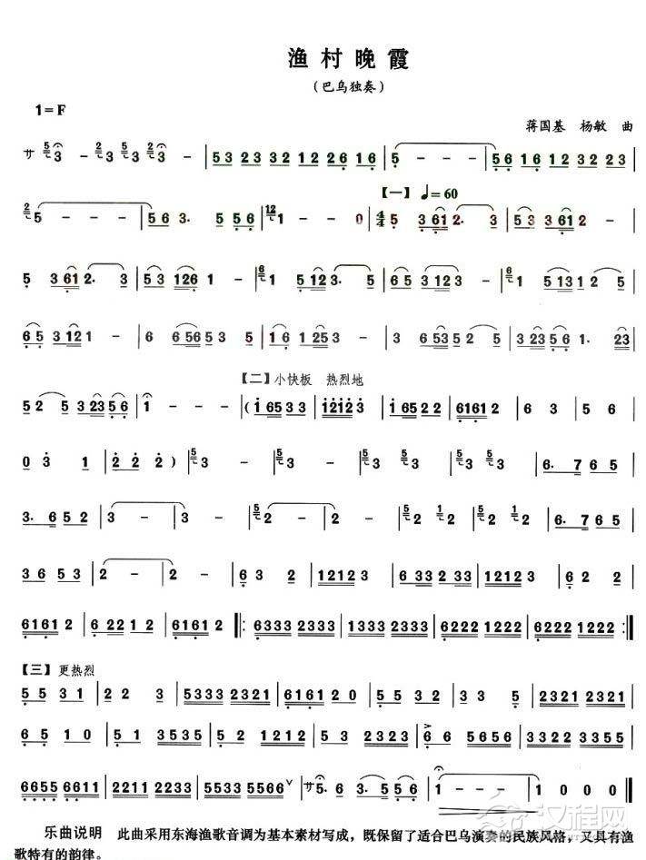 曲谱大全巴乌乐谱《渔歌》