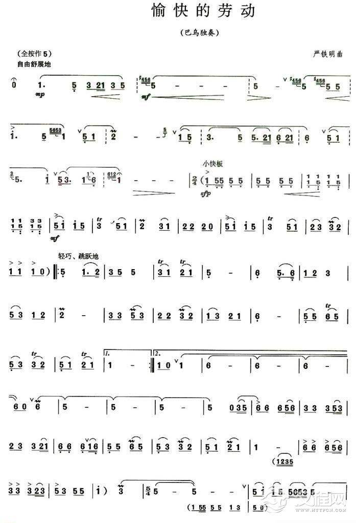 曲谱大全巴乌简谱《欢乐的嘎光》