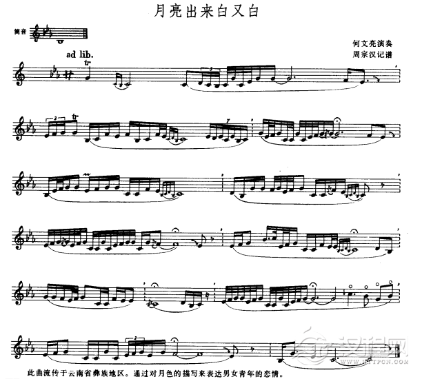 曲谱大全巴乌独奏谱《月夜思乡》五线谱