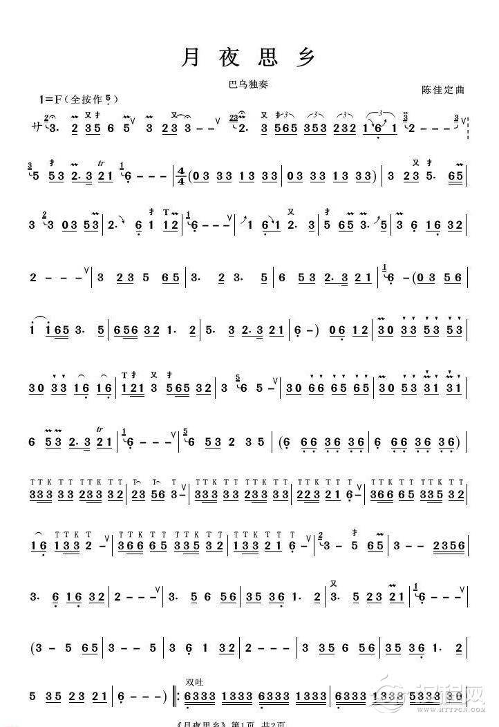 曲谱大全巴乌乐谱《月夜思乡》